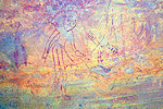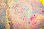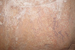 I knew from Bernard's articles (Sahara 16 & Sahara 17) that the famed fakes, the four Egyptian goddesses and the offering scene (all created by Claude Guichard as a joke, and Lhote fell for it) were somewhere to the left of the Fulani girls. After scrutinizing the wall we did find the faint remains of the "offering scene" with the bird-headed figures. The four goddesses were supposed to be on the same wall, but we found no trace of them.