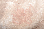 On our return to camp we stopped by another shelter near the new roundhead site, which was fully on the sun earlier, we could only note that there are some paintings but nothing could be made out. Now in the shade we saw a number of very faint roundhead figures, and at the left a huge masked figure appeared which I recognised as the one published by Bernard Fouilleux & Annie Mouchet in Cahiers de l'AARS. 14 (2010).