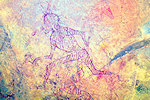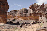 Near the western end of the area Bernard recorded another site with just a few, but very fine paintings of cattle and human figures. There is supposed to be another fine roundhead site in the area published by Alain Sebé, but this we failed to find despite searching the most likely spots.