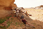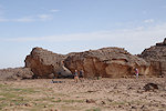 At the edge of the broad valley leading to Qzanehare we passed the sites of Rayaye, a pace we did not visit since October 2011. Most of the sites here are of a relatively late period, and there are a number of painted spirals, very similar to the engraved ones at Wadi Djerat. We reached Ozanehare by midday, settling in to a series of shallow shelters at the base of the cliff.