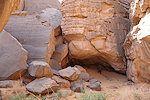 In the afternoon while the rest of the party set out with Abu Bakr to see the principal sites, with Bruno we made an attempt to locate the missing panel of Lajoux (the white masked figures, holding mushroom-like objects). We did an extensive search of all the likely rock faces outsite the normal tourist trail, and we did find several minor and to me unknown sites (including one seen in October 2011 which I failed to record properly at the time), but we could not locate any trace of the missing Lajoux panel.