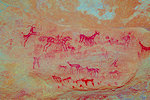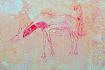 The finest site of Tan Raïcha is without doubt a long shelter (RC8) that is full of spectacular roundhead style scenes, published as "site Z" in Sahara 21. The presence of several "Martian" type roundhead figures leave no doubt to the stylistic affinities, but the most spectacular scenes are animals, including two rarer warthogs, one of which is surrounded by a snake, a unique and very intriguing depiction.