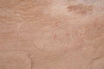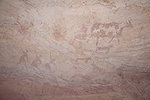 There were a number of other roundhead sites, mostly very faint, including one where a very cattle looking animal is depicted in the typical roundhead style, and alongside some roundhead human figures leaving little doubt about the stylistic affinities. Bernard found a number of other similar depictions, re-opening the debate whether the Roundhead style could be possibly contemporary with or immediately preceding other cattle depictions.