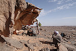 We spent the rest of the afternoon searching, and did find two more undocumented sites, but strangely none of the five still missing panels copied by the Lhote missions. While we were at one of the sites we had a brief but fairly intense rain shower, strong enough to make us take cover.