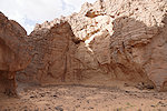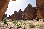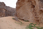 The way to Aouenrhet was mostly along the bottom of a wide sand-filled valley running roughly parallel to the Oued Amazar, now filled with green vegetation. We reached Aouenrhet mid-morning approaching from the south, leaving our packs at the "White lady" shelter.