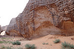 We reached our Sefar camp early afternoon, passing by some of the other northern sites along the way. This time we were not at the regular camping area but further to the north, permitting a return to Tin Teferiest as well as access to Sefar. It turned into a rather gloomy afternoon with low clouds and likely rain, as a precaution we moved all our supplies into the cover of a shelter.
