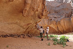 Our camels overtook us just as we made our way down to the bottom of the broad valley bordering Ozanehare, heading straight for Jabbaren while we were to make a small detour to the sites of Tabarakat. We passed the big cypress at the southern end of the valley, and stopped at the nearby guelta which still contained a little water, but much less than what was expected given the dense vegetation and abundant rains of the summer. Strangely it was the only standing water we saw along the valleys everywhere (though there were some we did not see from where we got our water supply), some in our party jumped at the opportunity for a quick wash in the icy water.