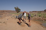 Now that we knew where to go, we could plan on visiting Ti Le'-Le' in a single day, getting back to the camp in the evening. Iman, Martine and Peter decided to spend the day visiting the engravings of Tin Terirt rather than the long 16 kilometre walk, so it was just the three of us with Bruno & Koen starting out at sunrise. It was an uneventful walk along the successive valleys, with the abundant fresh vegetation everywhere not making the going any easier.