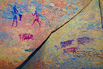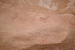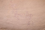 Moving into the first "plaza" south of the pass (parallel to the main trail) there is immediately a cluster of sites, mostly with faint and damaged pastoralist paintings with a few finer details. None of the Brenans scenes were identified among them.