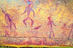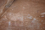 Continuing south we saw several lesser sites, the most interesting being a number of bizarre therianthropes at a site with a main panel of very weathered classic roundhead figures.