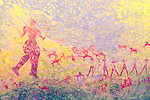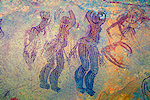 Strangely even though the area is full of other fine sites, Lhote's team only copied a single one, a huge panel with large sized human figures which though appearing to be archaic, do not quite conform to the Roundhead artistic convention, with recognisable facial features.