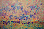 The rocky region between In Itinen and Ouan Dearbaouen is known as Ouan Assakemar, in 2009 Bernard Feuilleux found one of the panels copied by Lhote there, a few hundred metres from the easternmost In Itinen sites (to make life easier, I have used In Itinen site designations for this cluster of sites to match Lhote's areas). The panel depicts a number of very unusual spotted cattle or perhaps aurochs which do not resemble any other paintings in the broader area.