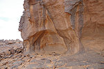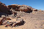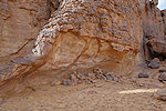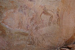 We reached the rock outcrops of Irrekam n'Oudi by midday, stopping at the same place for the midday rest. This gave me the opportunity to take better photos of the very damaged shelter nearby, where last time I noted an interesting giraffe butchering scene. Unfortunately the scene is so faint that once again I managed to cut the head of the giraffe from the close-up photos.
