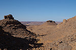 In the morning we continued along the road which led generally towards the north along a broad valley. After about four kilometres we reached the point where we needed to turn east into a wadi heading towards Abarkakou, our target. There was a sandy pass leading down into the valley, our camels just caught up with us so we allowed them to pass first, making sure that they all reach the bottom without any mishaps.