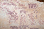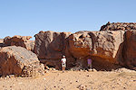 We reached Ouan Bender about two hours after starting from camp. Once arriving at the central area we stopped to photograph a number of known sites, while Abu Bakr wandered about, and within 10 minutes came back announcing that he found a big site which we did not see the year before - it turned out to be Bernard's site we were looking for, a good 80 metres from the indicated point in a completely different "street". Naturally a lengthy photo session followed, with a number of unique roundhead depictions at this shelter.