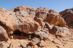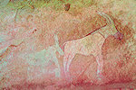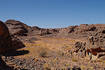 The first sites we encountered along the edge of the wadi were also not very exciting, some camel period and very faint pastoralist paintings, not the splendid roundhead scenes we were looking for based on the Lachauds' publication. While we were checking the shelters Cornelius caught up with us, he did manage to get a few distant but good shots of what turned out to be a herd of five Dorcas gazelle.