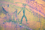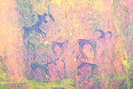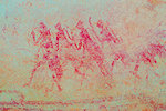 On our way back to our camp at Tissoukaï we passed three small unreported sites at the southern extremity of the area which we noted already in the morning, but then they were exposed to the sun and unphotographable. One of them contained a remarkable scene of running therianthropes, strangely not copied by the Lhote mission despite being right next to two sites that were.