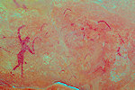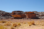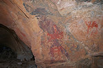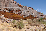 In the morning we continued with our search of the likely sites among the rock outcrops. Right at the first location we found a cluster of three shelters in a closed-off "street" all of which contained traces of paintings, one of them a large panel of hard to make out roundhead figures with numerous superpositions.