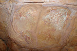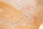 It was still only mid-morning, and our departure was only due after lunch, we were not ready to give up that easily. With Peter we returned to the northern cluster, where there might have been some gaps in our search. The hunch was right, not far from the large damaged cattle herd I found a small shelter with one of the missing scenes on the ceiling. Peter also recalled that he thought he saw something other than I did in the shelter found by Fenny, we went to check and indeed that too turned out to be another of the Lhote panels.