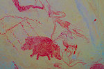 On a rock not far from here we found another large known site, a complex panel with a small hippopotamus and many other figures along the wall of a shelter under a large rock.