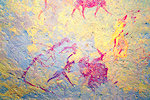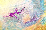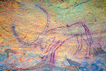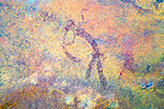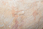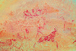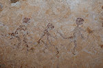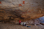 While we were scrutinizing the walls of the second site we found, Mike (a professional cave diver with an affinity to cramped places) explored a low uncomfortable shelter where I would never have looked for paintings, and found a very nice panel of somewhat unusual human figures, hidden on the slanting ceiling.