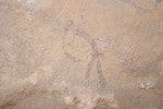 On the far side of a large rock outcrop Barbara and Mike found another site which was not marked on the map, with an intriguing roundhead style animal and some figures of a style which we have not seen before at Tissoukaï. Here too there was a large semicircle of stones placed in front of the shallow shelter.