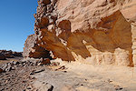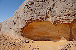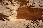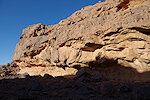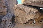We made camp along the bank of the oued after the In Djoua shelter where a low scarp offered some afternoon shade. There was a big guelta in a nearby tributary, and also several large shelters to be checked out along the cliffs of the wadi. After the midday rest we dispersed, but none of us seemed to have any luck, there were no animals and all the shelters were empty.