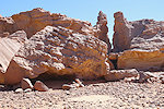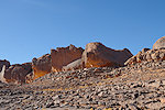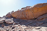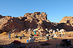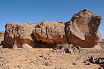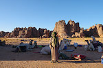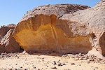 Our camels passed us as we were photographing the site, continuing to the agreed midday resting place. We soon followed, catching up with them in about an hour in the shade of a large rock tower. Poor Kent had been limping with a bad blister for several days, finally this time we could convince him that as there will be no sites along the rest of the way, he might as well mount a camel for the afternoon, a spare having been with us all along for just such an occasion. After lunch we continued for most of the afternoon, reaching camp in the southern valley of Ouan Agouba (also called Tin Tartaït) about an hour before sunset.