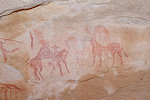 By the time we reached Takédédoumatine dark clouds moved in, it was a rather gloomy afternoon but there was no rain. The camels moved to camp south of the sites, while we made our way to the northern cluster of rocks, the only area where I had some waypoints from Bernard. We were aiming for a large conspicuous shelter along the eastern edge, which contained a large panel of mostly caballine paintings with some faint older scenes underneath, copied by the Lhote mission.