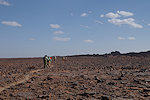 After lunch and a little rest we continued on the remaining one and a half kilometres towards the east, to our camp along the edge of Ouan Selalamine. On the way we passed a small keyhole monument, and rounding a small hillock we soon noticed the white specks of our camels on the grassy plain below - our crew made it safely to camp.