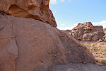 I spent a substantial amount of time checking the walls along both sides of the "street" leading to camp where supposedly there was a scene of three large figures very reminiscent of the three walking figures at Tin Abenhar. I did find the scene of two figures with "Pompadour hats" that I missed before, and after repeated passes through both sides I finally found the three extremely faint figures just around the corner from camp.