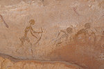 Not far to the north, in a wall niche among a cluster of larger rocks we found another of the Lhote copies, a herd of cattle with archers.