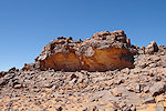 Takédédoumatine is a cluster of rocks on the top of the generally flat plateau about 12 kilometres to the south-south-west of Tissoukaï, it is the only remaining area covered by the Lhote missions which I have never visited before. It is a little offset from the regular camel trail from Tissoukaï to Tin Imgharen (Tin Bedjedj of Brenans & Lhote), it is very rarely visited. I am only aware of a single visit by Annie Mouchet and Bernard Fouilleux in 2007, to my knowledge nobody else had been there other than local nomads in the intervening years. Annie and Bernard only made a brief visit, but the 27 sheets the Lhote mission prepared in 1960 suggested a rather large and important site. We planned to spend the afternoon plus the morning there to find as many of the panels as possible, satellite imagery provided a fairly good overview of the places to be searched. We started out from Tissoukaï in the morning, and continued along the generally flat plateau (with a short lunch break) till mid-afternoon.