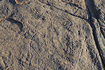 We agreed to meet back in camp at 1pm for lunch, with some electing to stay for a rest afterwards, others dispersing again. In the "Place Lhote" west of camp I did manage to find another of the missing panels, right where it was supposed to be on the east wall, but so faint that I missed it completely the last time. On the adjacent wall there was supposedly another panel somewhere high on the wall, but despite my best efforts I could not find it, though I did find some missed details on the adjacent known panel.