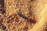 Before dawn the naturalist party set out to the edge of the broad valley along our route about a kilometre from camp which they have already scouted the previous evening, in hope of catching some grazing animals out on the plain at sunrise. We were to follow once the camp was packed and ready for loading. We were planning a long morning march till the shelter of In Djoua and a little beyond, to camp in the vicinity of another big guelta that may attract barbary sheep and possibly gazelle. We started out about an hour after sunrise, and soon caught up with the others, who again did not see anything. This is not to say we saw no animals, only the large mammals were lacking, there was plenty of life along the way under our feet. In the morning I caught a big Desert Locust (Schistocerca gregaria) that was still a bit stiff after the cold night, and a little later I found a rarity, a Zygentoma (silverfish) species which I have never encountered before anywhere in the Tassili (and only once at Jebel Uweinat). We also passed a guelta with the typical water beetles, but saw no fresh tracks of any larger mammals around it.