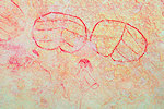 The other two turned out to be more difficult, finally Fenny found some traces of paint on a wall quite far west of where it was marked, and after a lengthy search we did find the fourth one, a fine but very faint group of humans, again quite a bit offset from the marked position.