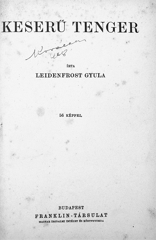 The memories of Leidenfrost, a marine biologist who led the first (and only) Hungarian marine research expedition just before the outbreak of the first Great War. Like all other titles in the seven volume 1936 series, it appeared in Classic IV. full cloth binding, and at some later time it was also released in the Classic IV. half cloth binding. A dust jacket must have existed, but remains unknown.