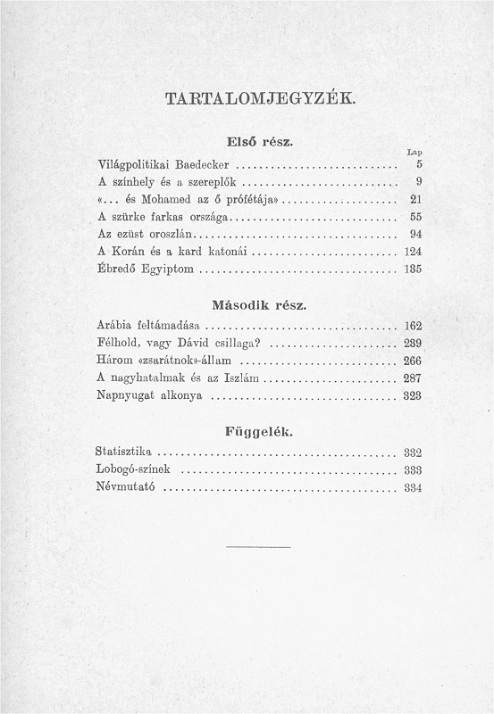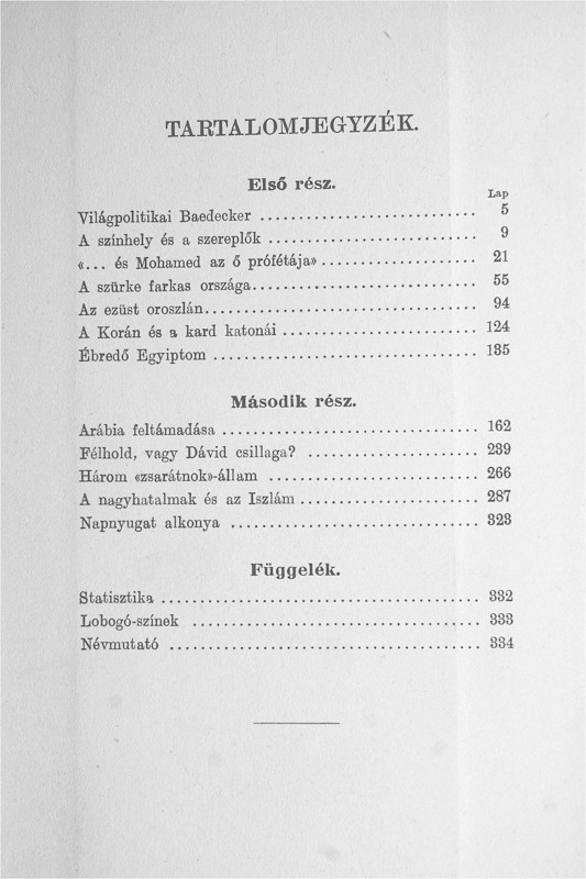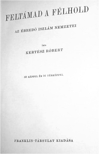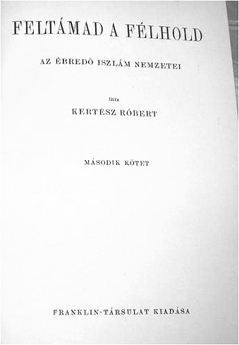 A treatise by Kertész, a Hungarian journalist on the rapidly transforming Islamic nations of the Near-East, partially based on personal experiences. Apparently like #52, it appeared near-simultaneously in both single and two vulume versions. The single volume edition is known in the rare white full cloth (with only titles and globe on the cover) version, plus uniquely in a crimson half cloth version that has identical decoration to the white full cloth version, a binding type that is otherwise only known from the MUFK series. It is not known whether this version is a one-off misprint, or it was a regular binding used alongside the white full cloth variety. The two volume set exists in both Classic IV. full cloth and half cloth versions. The dust jacket of the single volume version is known, it needs to be verified that the two volume version had the same design.