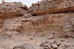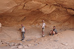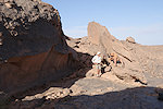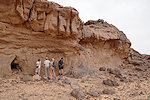 In the morning we made a quick visit to the engravings found by Iman & Peter to photograph them in a good contour light. They are two large bearded figures on a flat surface near the shelter, seemingly with a hairdo or headdress matching that seen on Uan Amil style paintings, but otherwise without any clear parallels.