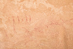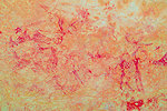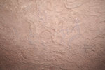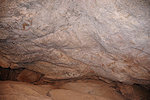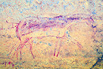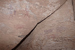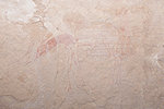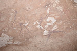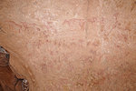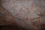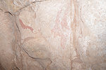 The most interesting shelter at Tin Talak is a small deep cave (TL8) not far from the previous site, with some very strange yellow paintings on the ceiling. The animals and human figures seem to show some affinity to Roundhead depictions, but they are also markedly different, are executed in a much cruder technique, and their general appearance appears to be relatively recent. Interestingly other than these unique paintings, there are no other styles present in the shelter.