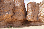 The way to Aouenrhet was mostly along the bottom of a wide sand-filled valley running roughly parallel to the Oued Amazar, now filled with green vegetation. We reached Aouenrhet mid-morning approaching from the south, leaving our packs at the "White lady" shelter.