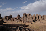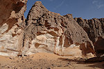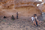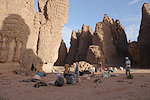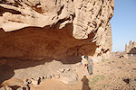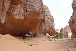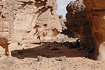 We reached our Sefar camp early afternoon, passing by some of the other northern sites along the way. This time we were not at the regular camping area but further to the north, permitting a return to Tin Teferiest as well as access to Sefar. It turned into a rather gloomy afternoon with low clouds and likely rain, as a precaution we moved all our supplies into the cover of a shelter.