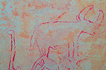 The finest site of Tan Raïcha is without doubt a long shelter (RC8) that is full of spectacular roundhead style scenes, published as "site Z" in Sahara 21. The presence of several "Martian" type roundhead figures leave no doubt to the stylistic affinities, but the most spectacular scenes are animals, including two rarer warthogs, one of which is surrounded by a snake, a unique and very intriguing depiction.