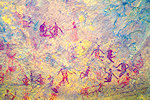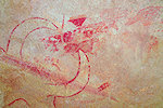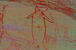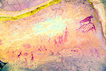 Continuing south we saw several lesser sites, the most interesting being a number of bizarre therianthropes at a site with a main panel of very weathered classic roundhead figures.