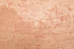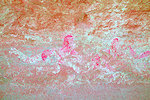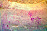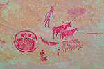 Moving into the first "plaza" south of the pass (parallel to the main trail) there is immediately a cluster of sites, mostly with faint and damaged pastoralist paintings with a few finer details. None of the Brenans scenes were identified among them.
