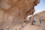 In the afternoon while the rest of the party set out with Abu Bakr to see the principal sites, with Bruno we made an attempt to locate the missing panel of Lajoux (the white masked figures, holding mushroom-like objects). We did an extensive search of all the likely rock faces outsite the normal tourist trail, and we did find several minor and to me unknown sites (including one seen in October 2011 which I failed to record properly at the time), but we could not locate any trace of the missing Lajoux panel.