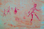 Near the western end of the area Bernard recorded another site with just a few, but very fine paintings of cattle and human figures. There is supposed to be another fine roundhead site in the area published by Alain Sebé, but this we failed to find despite searching the most likely spots.