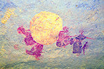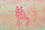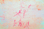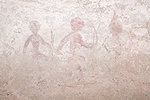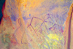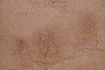 I knew from Bernard's articles (Sahara 16 & Sahara 17) that the famed fakes, the four Egyptian goddesses and the offering scene (all created by Claude Guichard as a joke, and Lhote fell for it) were somewhere to the left of the Fulani girls. After scrutinizing the wall we did find the faint remains of the "offering scene" with the bird-headed figures. The four goddesses were supposed to be on the same wall, but we found no trace of them.