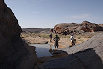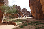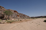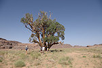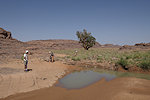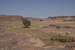 Our camels overtook us just as we made our way down to the bottom of the broad valley bordering Ozanehare, heading straight for Jabbaren while we were to make a small detour to the sites of Tabarakat. We passed the big cypress at the southern end of the valley, and stopped at the nearby guelta which still contained a little water, but much less than what was expected given the dense vegetation and abundant rains of the summer. Strangely it was the only standing water we saw along the valleys everywhere (though there were some we did not see from where we got our water supply), some in our party jumped at the opportunity for a quick wash in the icy water.