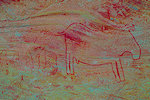 There were a number of other roundhead sites, mostly very faint, including one where a very cattle looking animal is depicted in the typical roundhead style, and alongside some roundhead human figures leaving little doubt about the stylistic affinities. Bernard found a number of other similar depictions, re-opening the debate whether the Roundhead style could be possibly contemporary with or immediately preceding other cattle depictions.